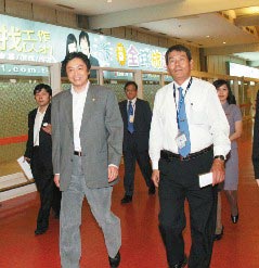 臺灣“華航”副總謝世謙和長榮總經(jīng)理陳欣德昨天一早親自在大廳接機。東航代表團一到大廳,立刻坐上長榮安排的專車,在陳欣德陪同下前往長航航天、空廚、訓練中心參觀。