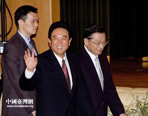 兩岸互贈珍稀動植物記者會今天在臺北舉行。這是陳云林江丙坤入場。中國臺灣網(wǎng) 田云鵬攝