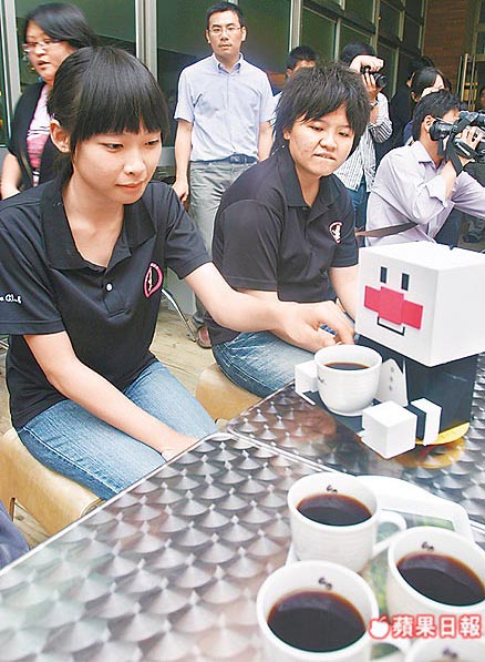 機(jī)器人端咖啡。來源:臺(tái)灣《蘋果日?qǐng)?bào)》
