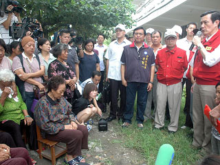 馬英九也專程慰問因疏散民眾失蹤的2名警察家屬,懷有身孕的江文祥妻子哭著告訴馬英九,當天的救災狀況指揮調度有問題,馬英九允諾會了解。另一位失蹤民眾家屬未被安排和馬英九見面,在村民的協助下“攔路下跪”陳情,馬英九說“慢慢講,你們聲音我聽到了”。(焦瑩瑩)