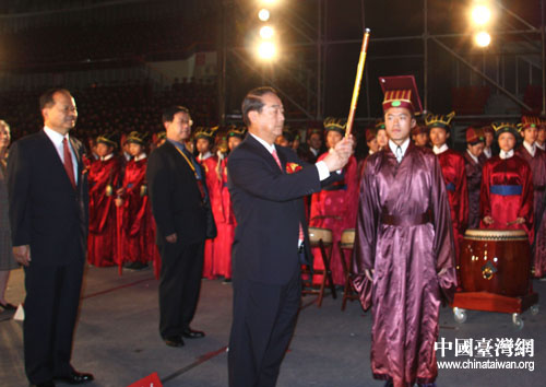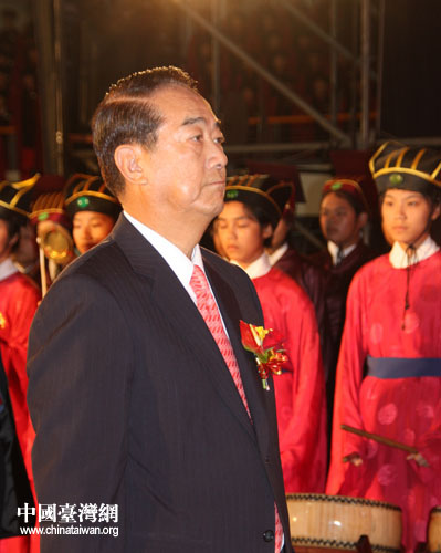 9月27日上午,2009年第二屆兩岸師生聯合祭孔大典在臺灣新竹縣立體育館舉行,圖為親民黨主席宋楚瑜先生受邀主禮正獻。(中國臺灣網 李杰 攝)