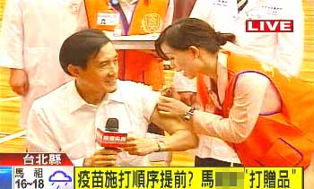 據臺灣TVBS電視臺報道,今天上午臺灣防疫總指揮朱立倫和臺當局“衛生署長”楊志良率先接種疫苗,為臺灣自制的疫苗背書,今天下午馬英九也卷起袖子來接種。在施打前,臺北縣長周錫瑋還向馬英九保證不會痛,一點感覺都沒有。馬英九則笑說,怎么可能一點感覺都沒有。