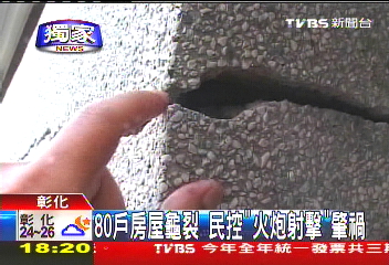 彰化縣大莊村民表示,火炮射擊威力巨大,伴隨劇烈震動,不僅震落了房屋磁磚,房屋的天花板、客廳地板、外墻均布滿大大小小的龜裂痕跡。一位村民表示,他的2層小樓整個都被震裂,裂縫非常大,如果有地震發生,一定會被嚇死,不敢再住。