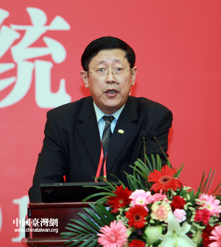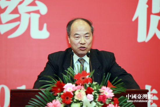 南京大學(xué)臺研所所長崔之清代表自己所在小組向大會作報(bào)告。(中國臺灣網(wǎng) 鐘寶華 攝)