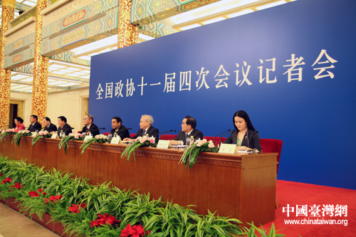 中國臺灣網(wǎng)3月6日北京消息 6日上午,全國政協(xié)十一屆四次會議在人民大會堂三樓金色大廳舉行記者會,主題是“加快轉(zhuǎn)變經(jīng)濟發(fā)展方式,促進‘十二五’時期經(jīng)濟社會科學發(fā)展”。全國政協(xié)委員厲以寧、陳錫文、李德水、王金祥、王欽敏、楊凱生、王文彪出席并回答記者的提問!。ㄖ袊_灣網(wǎng) 陳佳慧 攝)