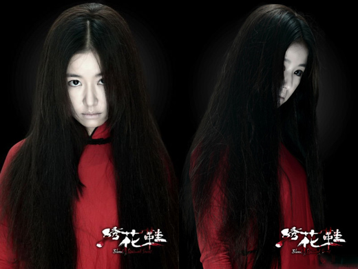 林心如首次挑戰鬼片,扮演紅衣女鬼。(圖片來自網絡)