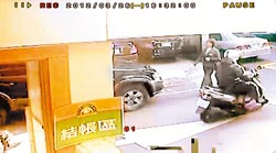 臺北市南京東路三段的臺灣中小企銀昨天下午4點多發生搶案,一名男子藏匿在樓梯間,開槍打傷保全人員后,搶走1千多萬現金,獨自騎乘機車逃逸。店家監視器畫面中,疑似嫌犯穿深色衣服騎機車逃離現場,機車腳踏板處可見塞滿裝錢提袋。(圖片來源:臺灣《中國時報》)