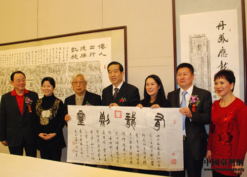 蘇士澍先生將加蓋金印“有龍則靈”的書法作品贈與臺灣代表(中國臺灣網 劉瑩 攝)