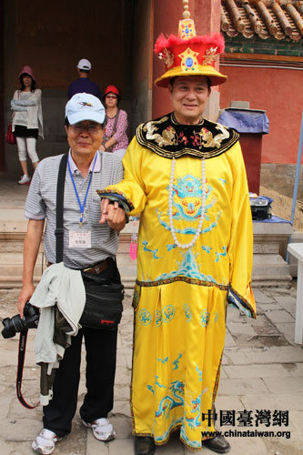 臺灣基層民眾游覽清東陵。圖為戲“穿”回古代,演繹皇上出宮。(中國臺灣網(wǎng)發(fā) 張成標(biāo) 攝)