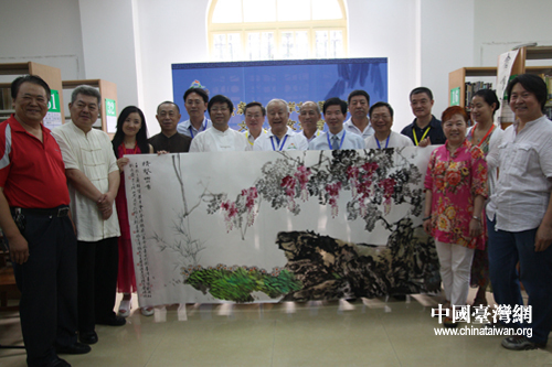畢竟兩岸書畫同源,只見8位畫家不用溝通,配合默契,不多時,堪稱兩岸文化界一樁盛事的兩岸書畫家的合作畫作幾近完成,而這也正好體現(xiàn)了大陸與臺灣的同根同源。