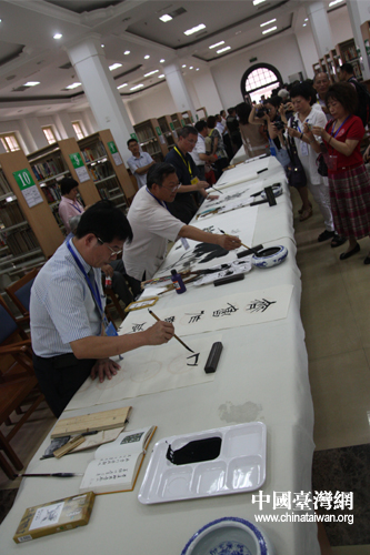 兩岸文化交流筆會上,兩岸書畫家同臺以丹青會友,用筆墨傳情(中國臺灣網(wǎng) 蕪?fù)?nbsp;攝)