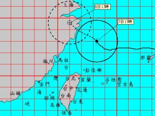 臺氣象局說,海葵臺風中心下午5時的中心位置在臺北的北北東方約370公里海面,以每小時12公里速度向西北西轉西北進行,近中心最大風速每秒35米,瞬間最大陣風每秒45米。預測明天下午5時的中心位置在上海的南方約170公里。