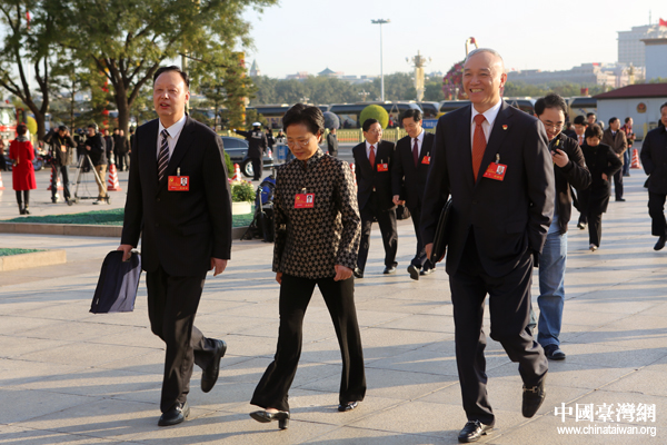 11月8日,中國共產黨第十八次全國代表大會在北京人民大會堂開幕。早上8時許,來自全國各地的代表抵達人民大會堂,這里再次成為世界矚目的焦點。圖為代表們步入人民大會堂。(中國臺灣網 王偉 攝)