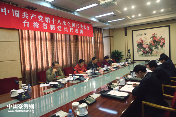 8日下午,黨的十八大臺灣省籍代表團在駐地舉行會議,討論黨的十八大報告。(中國臺灣網 王偉 攝)