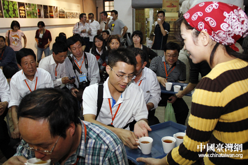 參訪團(tuán)品嘗臺(tái)灣“日月茶廠”知名紅茶。(中國臺(tái)灣網(wǎng) 于斯文 攝)