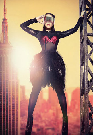 新專輯蕭亞軒化身“愛的隊長”,腳踩18公分高跟鞋站在鋼索上。(來源:臺灣《中國時報》)