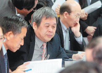 臺當局“勞委會主委”潘世偉(左二)昨日表示,希望“勞委會”組織改造能在“修法”后進行。(來源:臺灣《聯合報》)