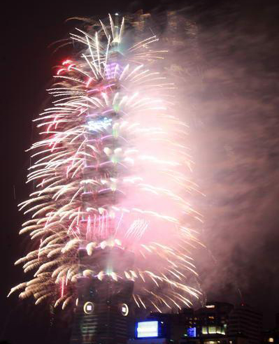 和去年一樣長達188秒的2013臺北101跨年煙火秀精彩登場,估計有85萬人到場觀賞。圖片來自臺灣今日新聞網