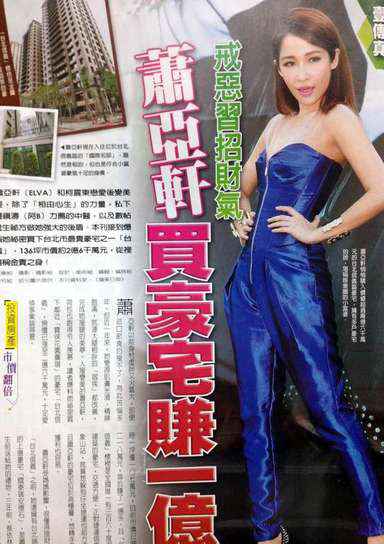 蕭亞軒投資房產狂賺1億。圖片來源:臺灣媒體