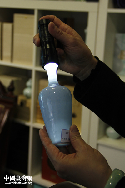 溫潤如玉的陶瓷酒瓶。(中國臺灣網 王偉 攝)