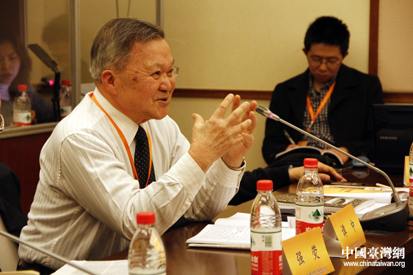 第四分會場上,芝加哥大學(xué)東亞研究中心輔導(dǎo)教授譚中對第一議題“中國傳統(tǒng)文化的當(dāng)代意義”進行發(fā)言點評。(中國臺灣網(wǎng) 張潔 攝)