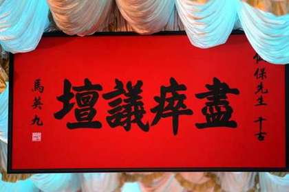 馬英九頒“盡瘁議壇”挽額。圖片來自臺灣媒體