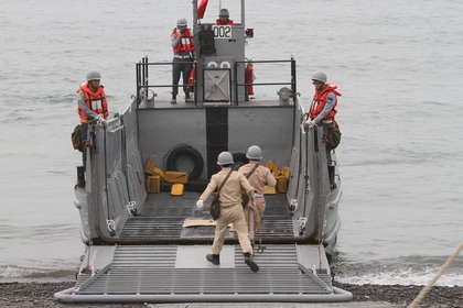 中國臺灣網4月18日消息 據臺灣媒體報道,臺軍演習又出糗!為配合臺軍“漢光29號演習”,臺軍海軍司令部今天清晨在屏東枋山鄉加祿堂海灘進行“聯興102-1號”兩棲登陸作戰操演。演練8舟波的登陸搶灘作業過程中,1輛已登陸搶灘的LCM機械登陸艇的閘門,欲離灘時一度關不起來,最后由修護人員上艇才排除故障。(中國臺灣網 焦源源)