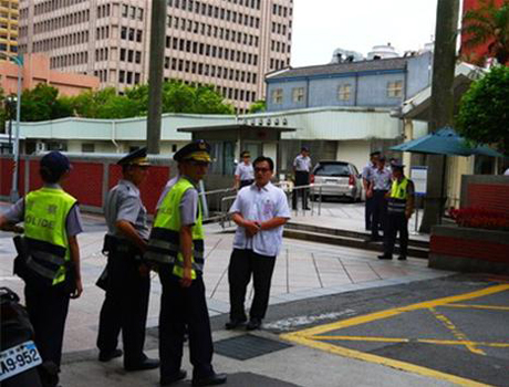 中國臺灣網6月14日消息 據臺灣媒體報道,臺灣“立法院”鎮江會館對面13日中午13時13分傳出槍擊案,一名50多歲男子中槍送醫。今天,臺“行政院長”江宜樺要來此作關于臺灣義務教育情況的報告,場外又有學生、家長團體準備抗議,因此,臺灣“立法院”外面布有重重警力,駐守重兵,門口有10多名警員管制盤查,后門圍墻處,甚至不到十米就有一名警員站哨。臺媒估計總共有近百名警力,全面戒備。(中國臺灣網 實習生高旭 何建峰)