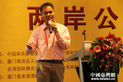 臺灣中華小腦萎縮癥病友協會秘書長李和謙建議,下一屆兩岸公益論壇可以提交出開完會之后的結果對非盈利組織的發展建議。(中國臺灣網 孟雅詩 攝)