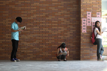 臺(tái)灣地區(qū)大學(xué)指考第二天,考試開(kāi)始前考生在場(chǎng)外溫書(shū)。(圖片來(lái)自臺(tái)媒)