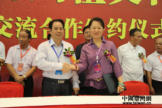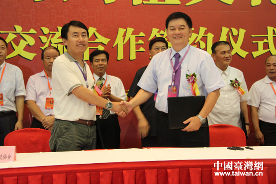 海南省對外經(jīng)濟(jì)發(fā)展促進(jìn)會與臺灣中華經(jīng)濟(jì)文化發(fā)展促進(jìn)會簽約。(中國臺灣網(wǎng) 李丹 攝)