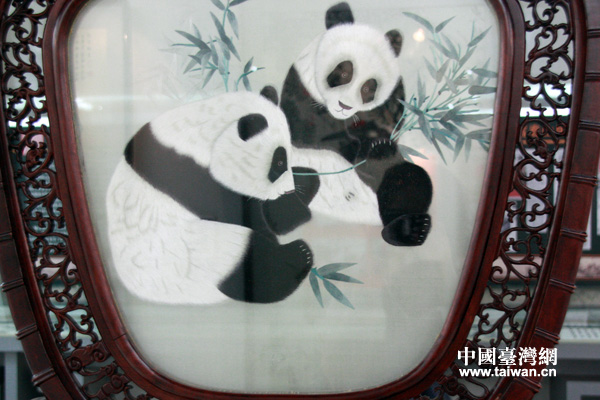 湘繡作品熊貓。(中國臺灣網(wǎng) 高斯斯 攝)