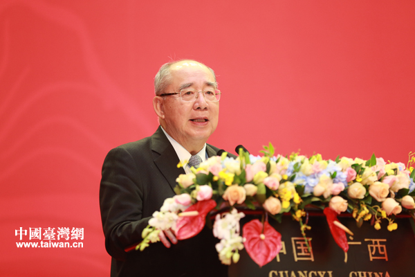 10月26日,中國國民黨榮譽主席吳伯雄出席第九屆兩岸經貿文化論壇開幕式并致辭。(中國臺灣網 于斯文 攝)