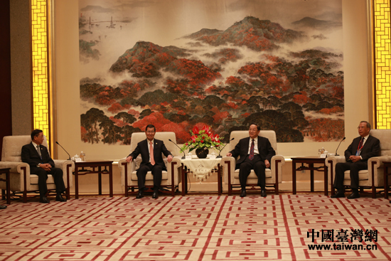 中共中央政治局常委、全國政協主席俞正聲會見2013兩岸企業家紫金山峰會嘉賓代表。(中國臺灣網 王偉 攝)