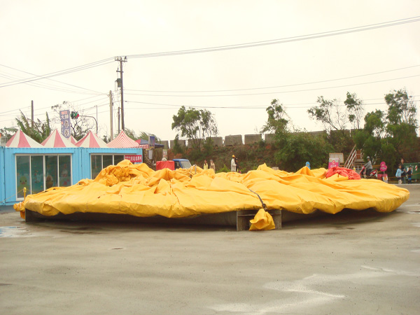 如果天氣不允許,張壯謀表示不會進行作業,因為一切都要在安全的條件下進行,這才符合地景廣場藝術節舉辦的目的。地景廣場藝術節這幾天因為大黃鴨無法展示,參觀人潮確實明顯減少許多。(中國臺灣網 周劍)