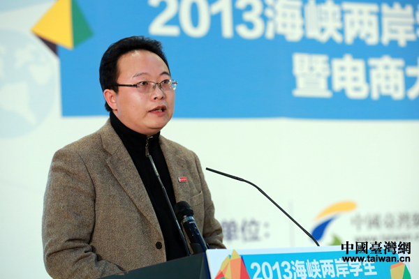 20日下午,由中國臺灣網(www.wanyn.com)、海峽兩岸互聯網交流委員會、中華臺灣MIT正品推廣協會主辦的“2013海峽兩岸學生電子商務大講堂暨電商大賽頒獎典禮”在京舉行。圖為大陸獲獎教師、福建閩江學院軟件學院的段炫宇發表感言。(中國臺灣網 于斯文 攝)
