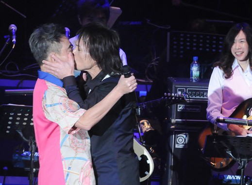 陳升(左)和伍佰男男吻。(臺媒圖)