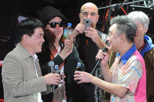 陳升演唱會的“跨年演唱會”唱進第20年,今年28、30日于臺北國際會議中心開唱。他前一天記者會上呼吁觀眾“可以帶東西進來吃”,果然就有人帶了酒類助興。陳升才唱到第五首《原住民的演唱會》,就有臺下觀眾送上一杯紅酒,他也爽快喝光。