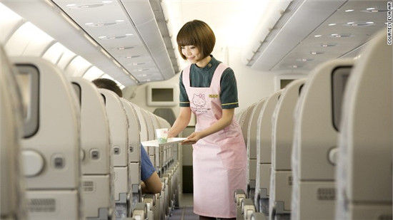進(jìn)入艙門(mén),飛機(jī)內(nèi)有100多個(gè)Hello Kitty的圖案,分別印于頭枕罩、紙巾、餐具、小吃和肥皂等。當(dāng)你用衛(wèi)生紙時(shí),上面印有Hello Kitty。拆開(kāi)堅(jiān)果袋之前,也會(huì)看到 Kitty。機(jī)上乘務(wù)人員身穿Hello Kitty圍裙,銷(xiāo)售Kitty品牌限量免稅商品。乘客上機(jī)之前,就已沉浸在Hello Kitty的世界中。(中國(guó)臺(tái)灣網(wǎng) 高旭)