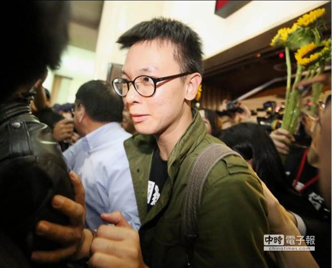 10日傍晚林飛帆(中)與同學們一起步出議場、離開“立法院”。(圖片來自臺媒)
