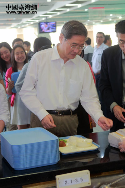 張志軍與臺灣學生一同排隊打飯。(中國臺灣網 于斯文 攝)