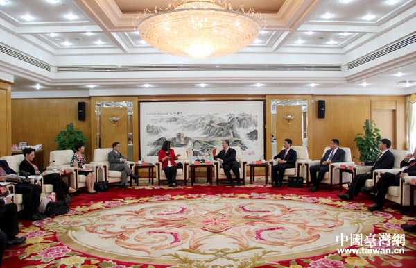 19日下午,中國統(tǒng)促會副會長桑國衛(wèi)在京會見了以林清為團長的全美中國和平統(tǒng)一促進會聯(lián)合會訪問團一行。(中國臺灣網(wǎng) 普燕 攝)