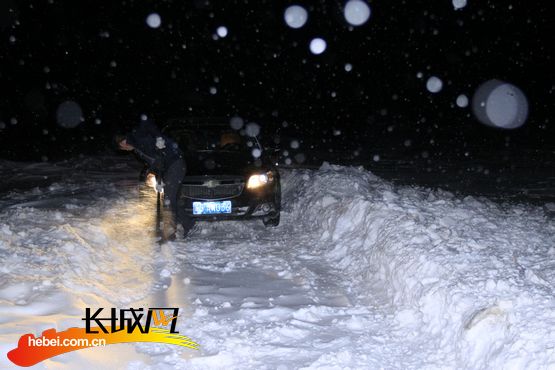 長城網(wǎng)張家口2016年1月2日訊(記者張世豪 通訊員胡年帥牛占忠)2015年12月29日,記者同康保縣委宣傳部兩名同志前往該縣屯墾鎮(zhèn)范家營行政村進(jìn)行走基層采訪。返回途中,車輛被困于蘇計溝自然村(屬于范家營行政村,行政村與自然村相隔三公里)南三公里處的積雪中,冰雪托住底盤,進(jìn)退兩難;在白毛風(fēng)中艱難地自救兩個多小時,車輛仍未脫困;經(jīng)聯(lián)系,蘇計溝村七名村民冒雪輾轉(zhuǎn)步行十多公里,于夜間來到事發(fā)地,在他們的幫助下,記者一行脫困。