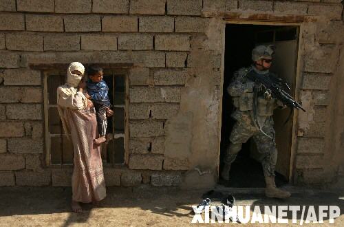 3月8日,一名駐伊美軍士兵在伊拉克的迪亞拉省搜查當地居民住房。新華社/法新