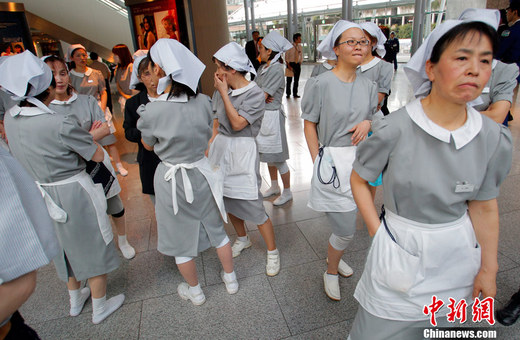 日本近海3月11日發(fā)生了強烈地震,首都東京震感強烈。日本氣象廳隨即發(fā)布了海嘯警報,稱地震將引發(fā)約6米高海嘯。圖為旅館職員聚集在酒店門口。