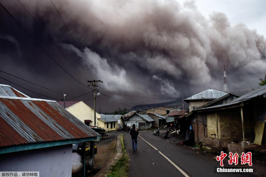 當地時間11月1日,位于印度尼西亞北蘇門答臘省卡羅地區的錫納朋火山持續噴發,火山灰遮天蔽日。