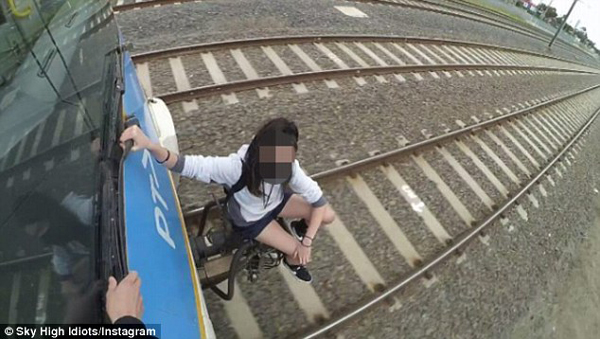 在社交媒體上,已有不少這樣驚心動魄的照片。有的年輕人站在鐵軌上,有的爬到了車廂外。鐵路部門官員稱,當火車突然加速或緊急制動時,那些踩在火車緩沖器上的人會被甩到鐵軌上,就算沒被摔死,也可能會被下一輛火車撞死。