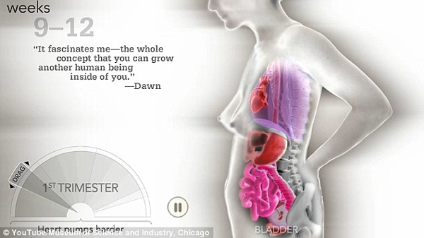 【環(huán)球網(wǎng)綜合報(bào)道】 據(jù)英國《每日郵報(bào)》2月23日報(bào)道,近日,美國芝加哥科學(xué)工業(yè)博物館制作了一則視頻,展現(xiàn)了婦女懷孕時(shí)身體內(nèi)各器官的變化過程,同時(shí)還配有不同的母親描述自己懷孕期間的感受。用戶可以自由地選擇視頻中的不同懷孕階段進(jìn)行觀看。