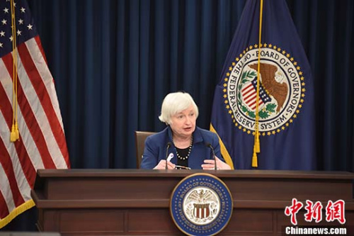 當(dāng)?shù)貢r間3月15日,美聯(lián)儲主席耶倫在華盛頓宣布,將聯(lián)邦基金利率上調(diào)25個基點。 中新社記者 鄧敏 攝