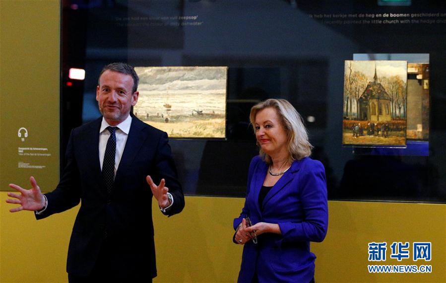 3月21日,在荷蘭阿姆斯特丹,荷蘭教育、文化和科學大臣耶特·比塞馬克(右)與梵高博物館館長阿克塞爾·呂格爾出席儀式。兩幅失竊的梵高畫作21日在荷蘭首都阿姆斯特丹的梵高博物館展出,博物館舉行儀式,歡迎畫作“回家”。這兩幅畫作分別為《斯海弗寧恩的海景》和《離開尼厄嫩教堂》,于2002年12月在梵高博物館內被盜走。2016年9月,意大利警方在意大利斯塔比亞海堡市的一間住宅內發現了這兩幅畫。新華社/路透